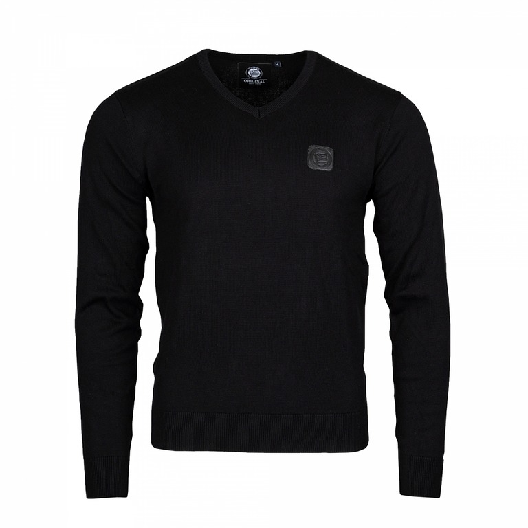 Pullover V mit Patch genäht und Innenlabel Webpatch
